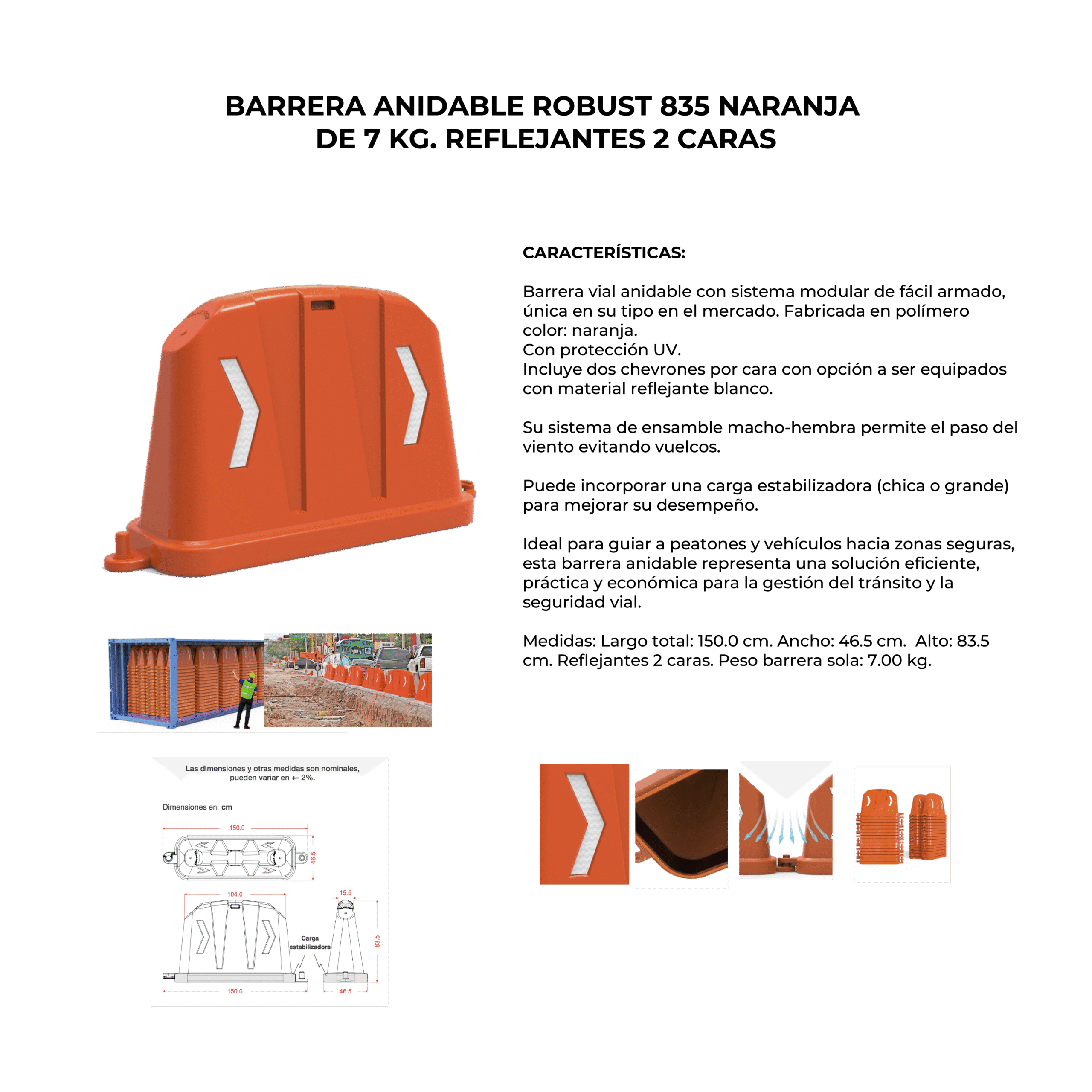 Barrera Anidable Robust 835 Naranja De 7 Kg. Reflejantes 2 caras