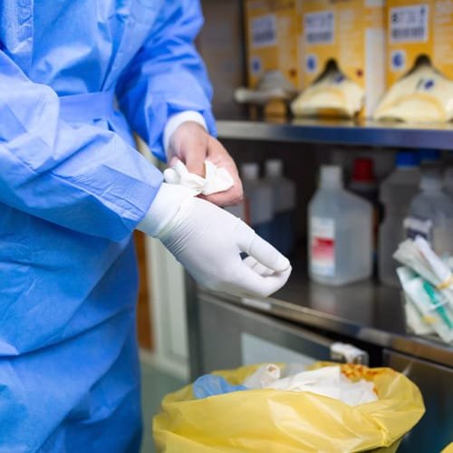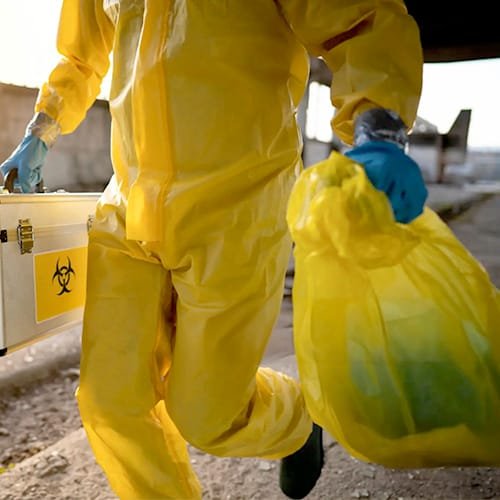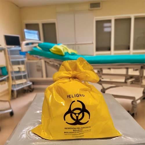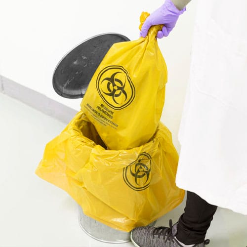 Bolsa de polietileno de baja densidad, libre de metales pesados para la recolección de residuos biológico infecciosos. Carga Máxima: 1 kg. Impresa a una tinta con logotipo de biológico infeccioso. Con fuelles. Calibre 200. Medidas: Ancho: 90.0 cm. Alto: 120.0 cm. Color: Amarillo.