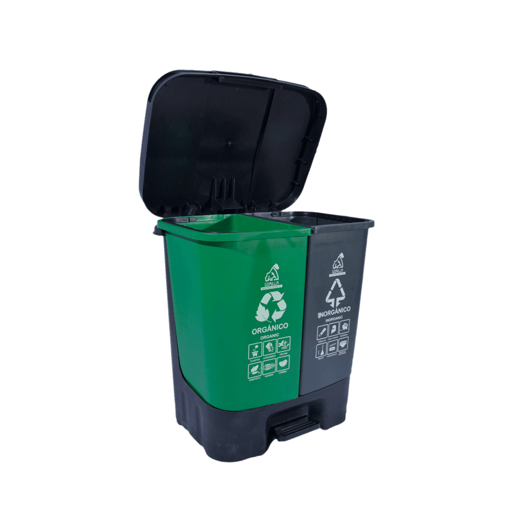 Descripción: Rótulos: Inorgánico/ Reciclaje / Orgánico. Material: Polipropileno Medidas:33 X 44 X 36 Colores: Gris - Verde.