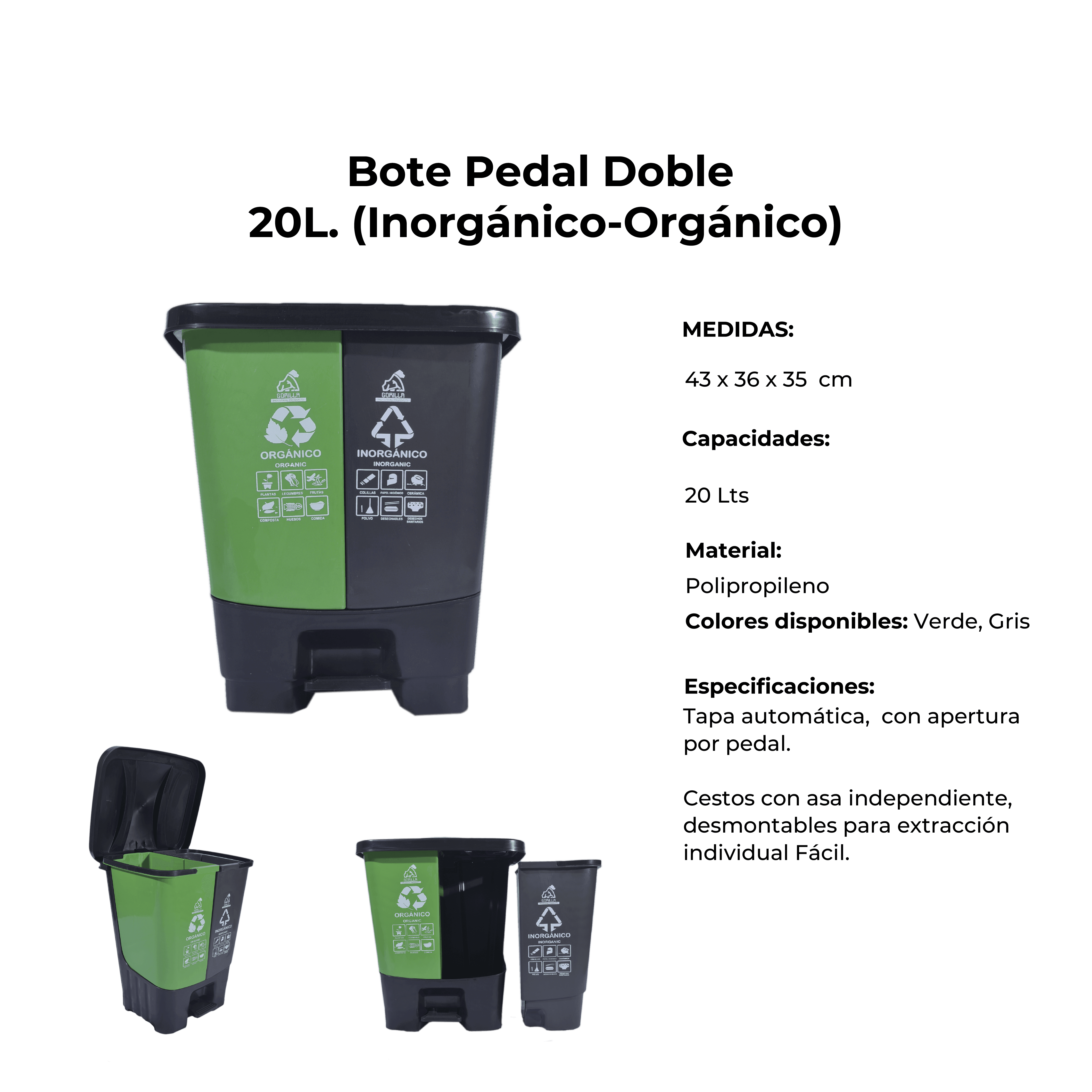 Bote Pedal Doble 20L. (Inorganico-Organico)