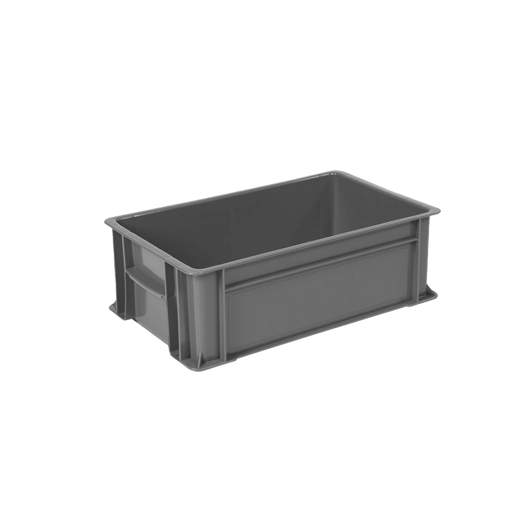 Caja de plástico fabricada en polietileno de alta densidad virgen (HDPE).Capacidad de Carga: 35 Kgs. Color: Gris. Medidas: Largo: 45.0 cm. Ancho: 27.0 cm. Alto: 15.3 cm. Forma de estiba: Apilable. Condiciones de estiba 6 piezas con producto.