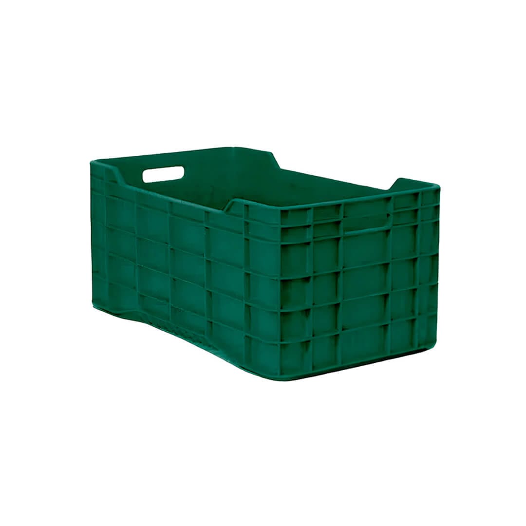 Descripción: Caja de plástico fabricada en polietileno de reproceso. Medidas exteriores: Largo: 71.0 cm. Ancho: 39.0 cm. Alto: 31.0 cm. Medidas interiores: Largo: 68.5 cm. Ancho: 36.2 cm. Alto: 30.0 cm. Capacidad: 35 kg. Peso: 3.2130 Kgs. Volumen: 73.0 l. Versión: Cerrada. La caja León es ideal para la cosecha o transporte de la industria agrícola. Es estibable, por lo que permite un gran ahorro de espacio así como fácil manejo y limpieza. Gracias a su gran diseño y tecnología cuentan con una excelente ventilación y es muy resistente. Se puede personalizar con logotipo en inyección o hot stamping. Color: Verde. Sujeto a disponibilidad. En reproceso no se garantiza color.