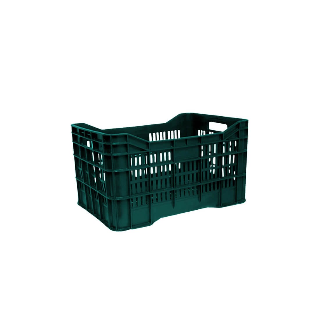 Caja de plástico fabricada en polietileno de reproceso. Medidas exteriores: Largo: 73.0 cm. Ancho: 42.0 cm. Alto: 35.0 cm. Medidas interiores: Largo: 69.5 cm. Ancho: 38.5 cm. Alto: 33.5 cm. Capacidad: 40 kg. Peso: 3.4641 Kgs. Volumen: 85.0 l. Versión: Calada. Tipo de empaque: Estibada. Color: Verde. Sujeto a disponibilidad. En reproceso no se garantiza color.