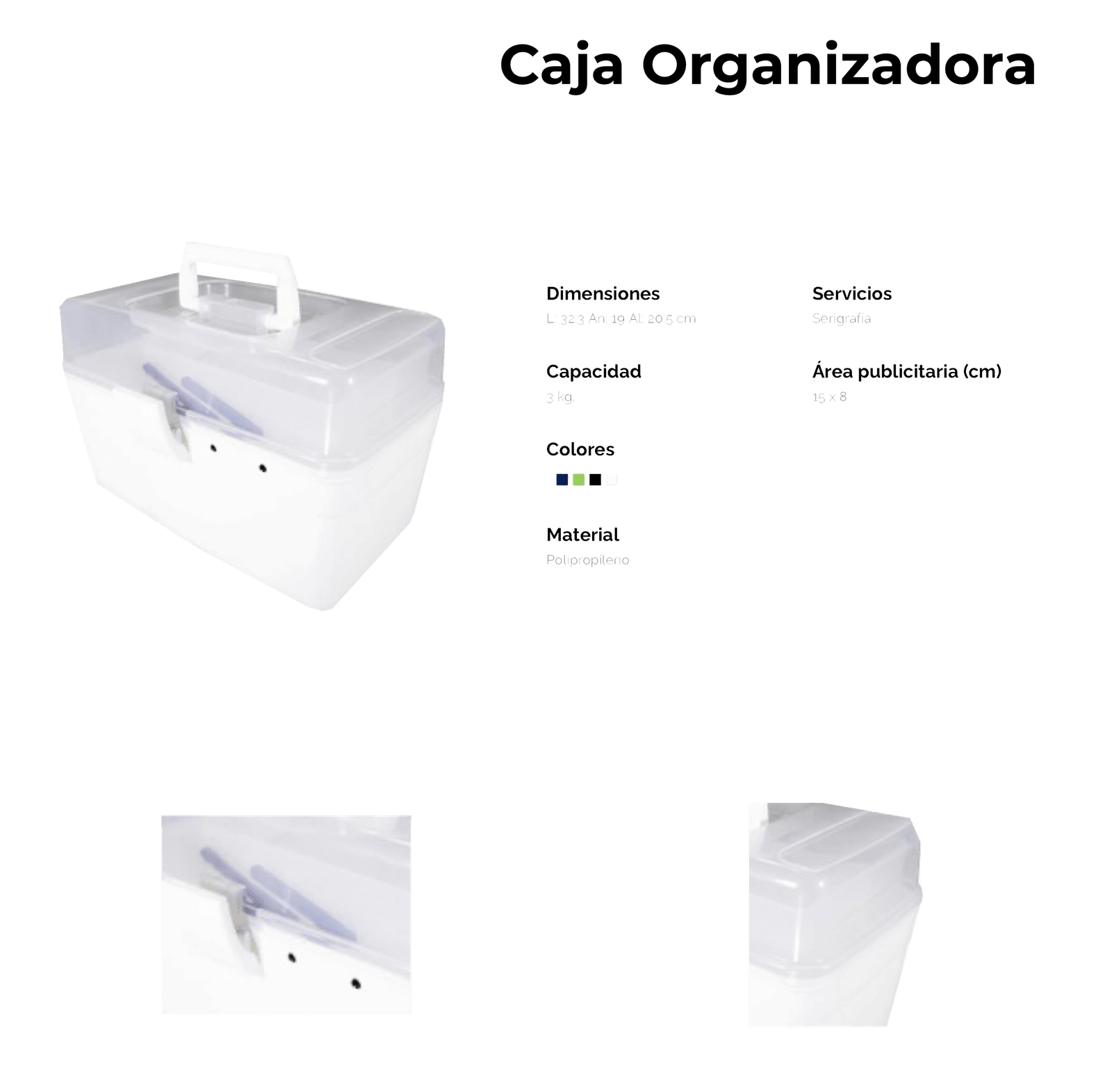 Descripción: Caja de plástico fabricada en polipropileno. Medidas: Largo: 32 cm. Ancho: 19 cm. Alto: 20.5 cm. Peso: 0.835 Kg. Capacidad de Carga: 3 Kg. Color: Blanco. Minimo de compra: 3 piezas.