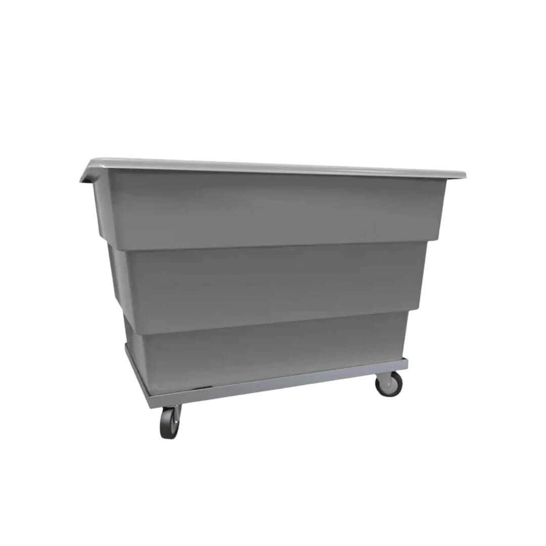 Contenedor fabricado en polietileno de media densidad. Capacidad volumen: 900 litros. Color: Gris Claro. Largo: 134.0 cm. Ancho: 94.0 cm. Alto: 77.0 cm. Sin ruedas.