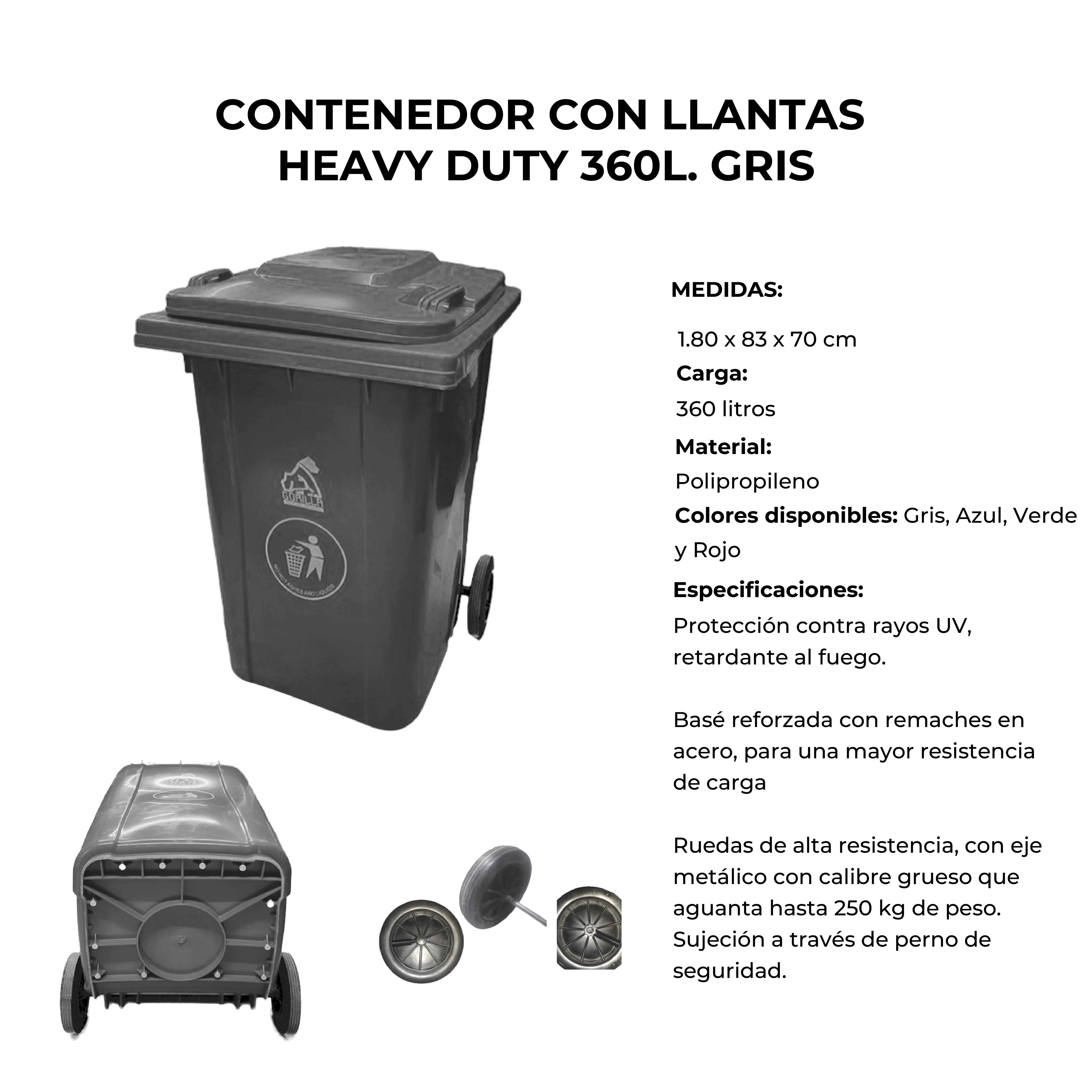 Contenedor Con Llantas Heavy Duty 360L. Gris