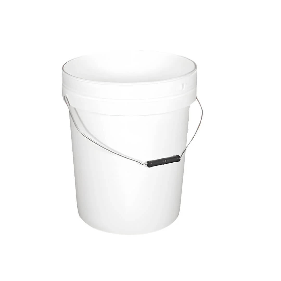 Descripción: Cubeta de plástico fabricada en polietileno de alta densidad virgen (HDPE). Medida superior exterior: 31.25 cm. Altura: 36.15 cm. Peso: .718 kgs. Capacidad interior: 19 l. Cubetas grado alimenticio, ideales para almacenar y guardar materiales sólidos y líquidos. Con tapa de sello inviolable y asa metálica. Color: blanco.