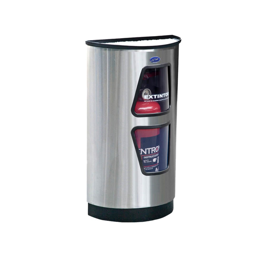 Portaextintor de acero inoxidable con acabado espejo. Tapa doble función la cual puede cumplir la función de ser cenicero por un lado o tapa por el otro. Tapa desmontable para acceder fácil y rápidamente al interior. Fondo de plástico de alta resistencia, para un mejor cuidado de la pieza y del piso ya que evita los rayones y también las manchas en el piso en caso de estar húmedo. Doble ventana al frente del portaextintor. Con calcomanía indicativa. Producto reciclable gracias a sus materiales y sistemas de fabricación. Producto accesible a personas discapacitadas. Peso máximo: 6 Kg. Medidas: 40x20x65. Imagen ilustrativa, el producto final puede variar.