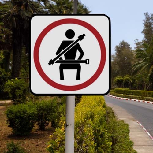 SR - 34 Señal Restrictiva De Uso Obligatorio Del Cinturón De Seguridad 61x61 Reflejante Grado Ingeniería