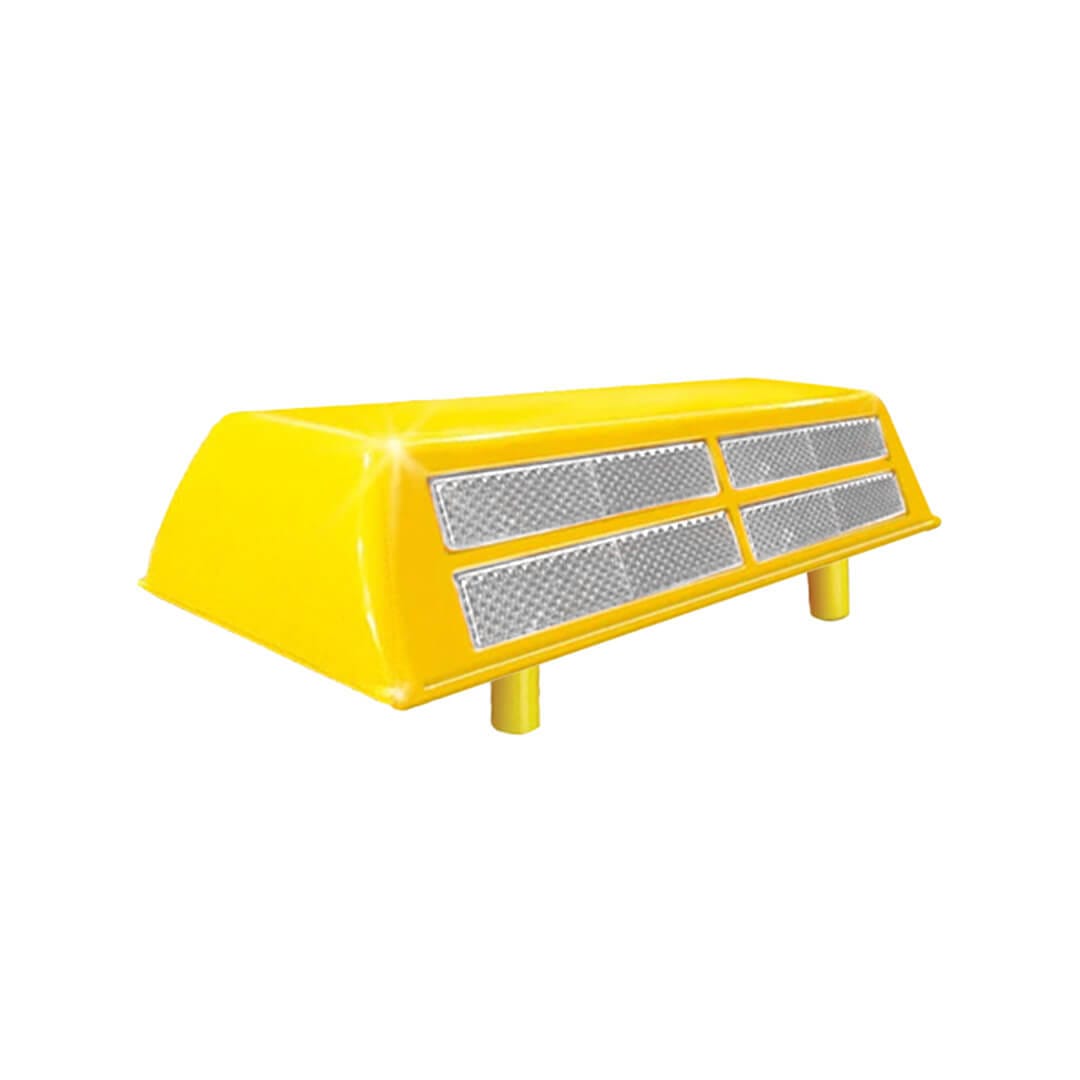 Cuerpo fabricado en abs, con 4 reflejantes en color Blanco. Excelente como reductor de velocidad. Gran resistencia. Medidas: Largo: 25.0 cm. Ancho: 10.5 cm. Alto: 4.5 cm. Incluye dos pernos ABS.