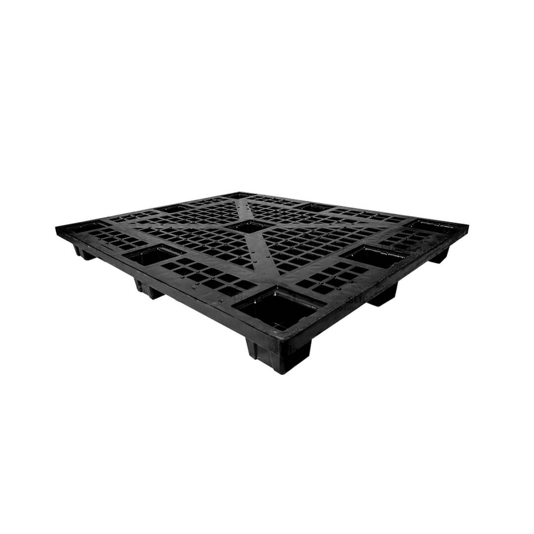 Tarima de plástico fabricada en polietileno de reproceso. Medidas: Largo: 100.0 cm. Ancho: 120.0 cm. Alto: 13.5 cm. Peso: 700 Kgs. Carga estática: 2,000 kg. Versión: Calada. Tipo de empaque: Enfilada. Color: Negro. Sin tapas. Bajo costo, resistencia, seguridad, son solo algunas de las características que hacen del pallet / tarima Novapal 100 una gran herramienta para tus procesos. Es higiénico y seguro al no contar con clavos o astillas. Fabricado con materiales 100% reciclables.